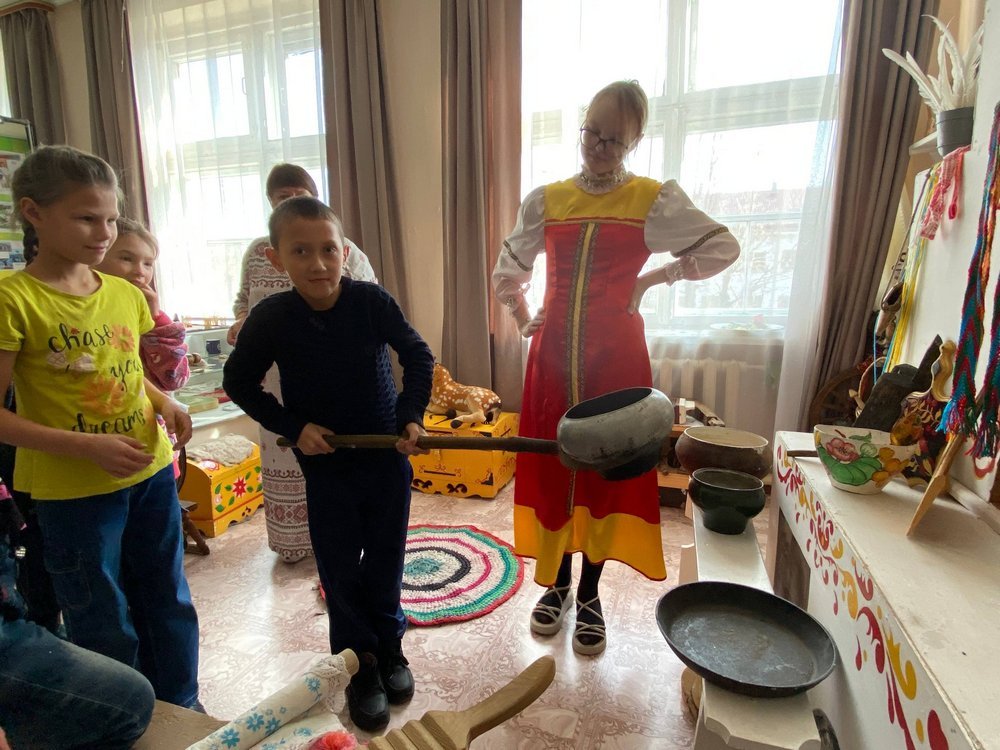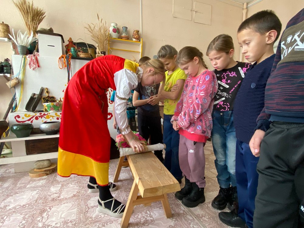 В рамках Русского форума в ГУСО «Петровск-Забайкальский центр помощи детям, оставшимся без попечения родителей Единство» Забайкальского края в музее «Вернисаж» для воспитанников 1,8, 5семей проведено музейное занятие «Путешествие по русской избе».