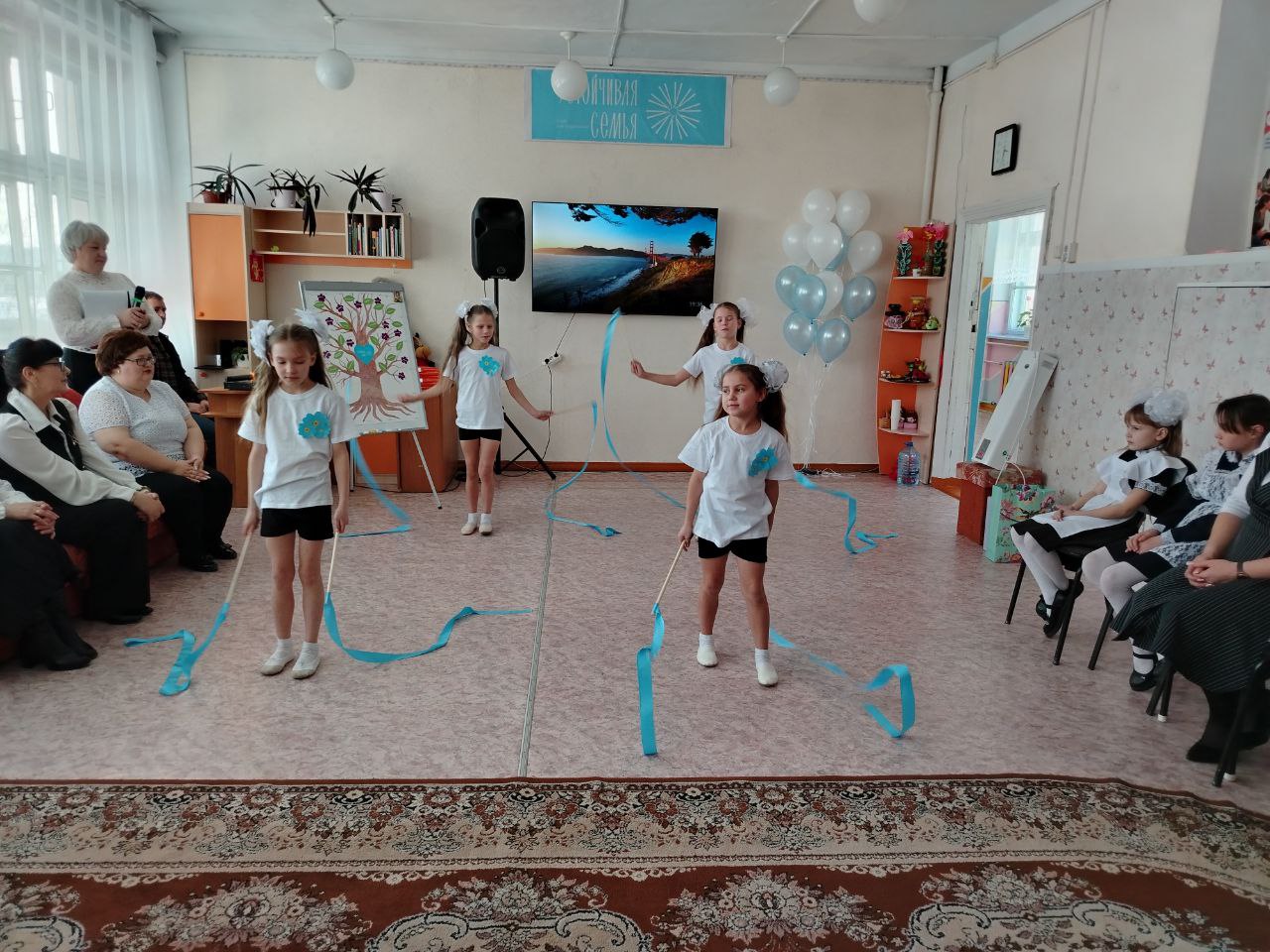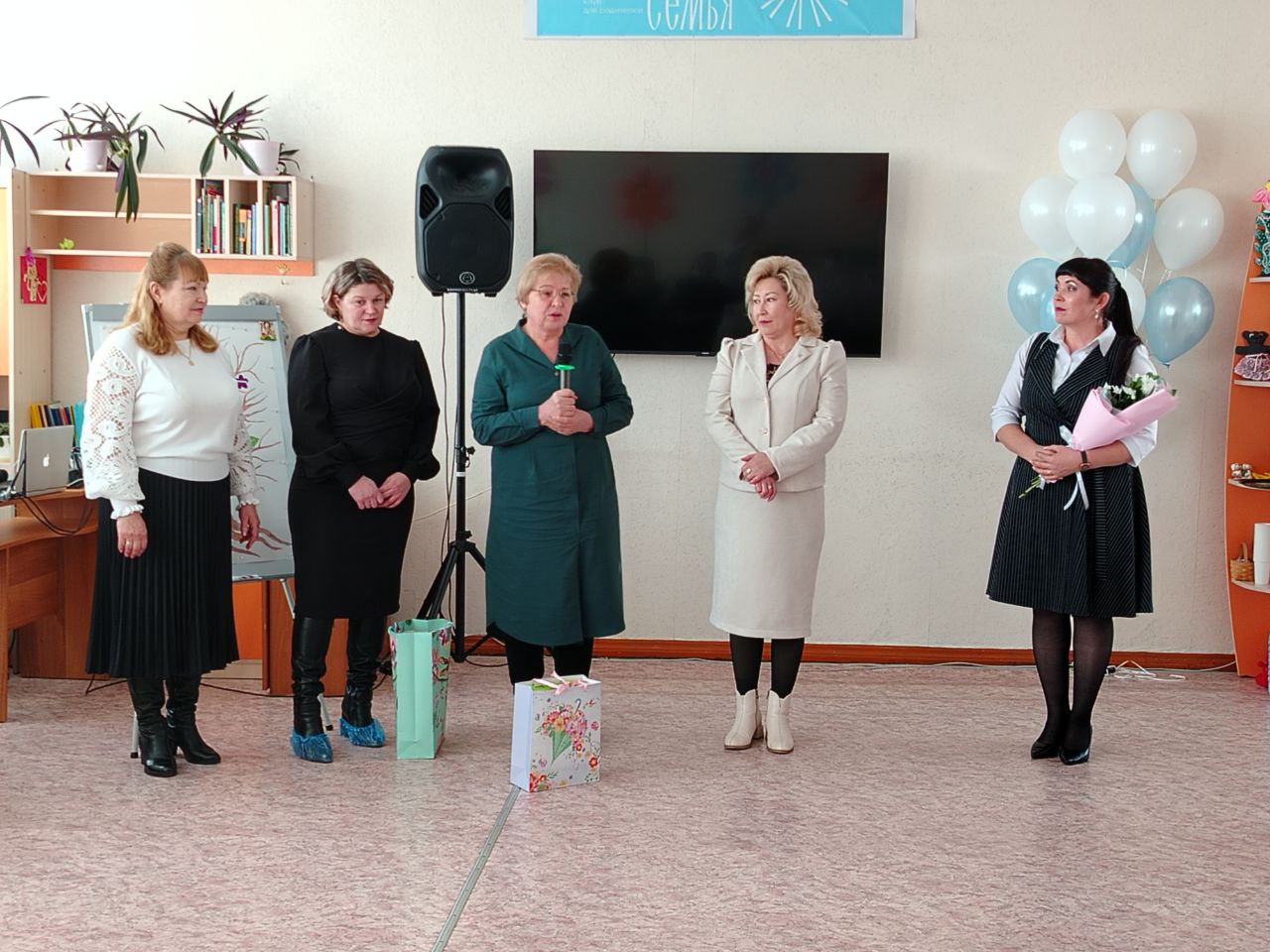 заместителю главы МО по социальным вопросам и работе с общественными объединениями Алёне Садохиной, исполняющей обязанности директора центра «Единство» Надежде Полуяновой и участнице клуба Наталье Ушаковой с дочерью Ираидой. В своей поздравительной речи Надежда Полуянова отметила, что центр гордится специалистами, прошедшими обучение по программе «Азбука счастливой семьи» и что клуб станет не просто местом встреч, а настоящим островком надежды и преображения для родителей, которые стремятся изменить свою жизнь к лучшему и сохранить своих детей. Она вручила удостоверения специалистам, которые прошли обучение и подчеркнула, что эти педагоги поделятся с семьями своими знаниями, компетенциями и профессионализмом в решении задач, стоящих перед клубом. С открытием клуба поздравили: заместитель главы МО по социальным вопросам и работе с общественными объединениями Алёна Садохина, заместитель председателя, начальник Петровск‑Забайкальского отдела социальной защиты населения Любовь Терпугова, начальник отдела опеки и попечительства администрации Петровск‑Забайкальского МО Екатерина Мальцева, заведующая отделением сопровождения семей с детьми «Преодоление» Любовь Кузнецова. После торжественной части выступили руководители клуба социальный педагог Юлия Вакарина и психолог Светлана Пятых. Они рассказали о миссии и целях проекта, а также познакомили присутствующих с участниками клуба. Воспитанники центра подготовили трогательные стихи о семье, творческий номер — «Танец для мамы» с лентами и вручили каждому участнику клуба сувениры символ года «Лошадку». Участницы хорового коллектива «Март -MAXI», исполнили песню «Живи семья».