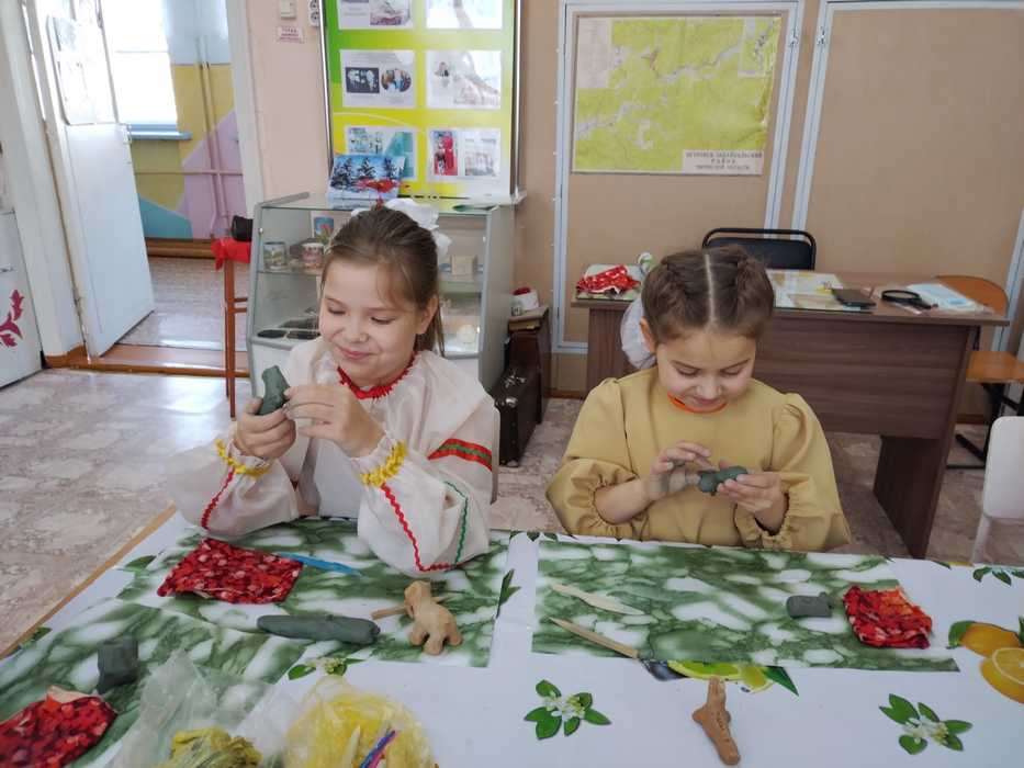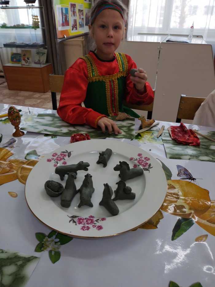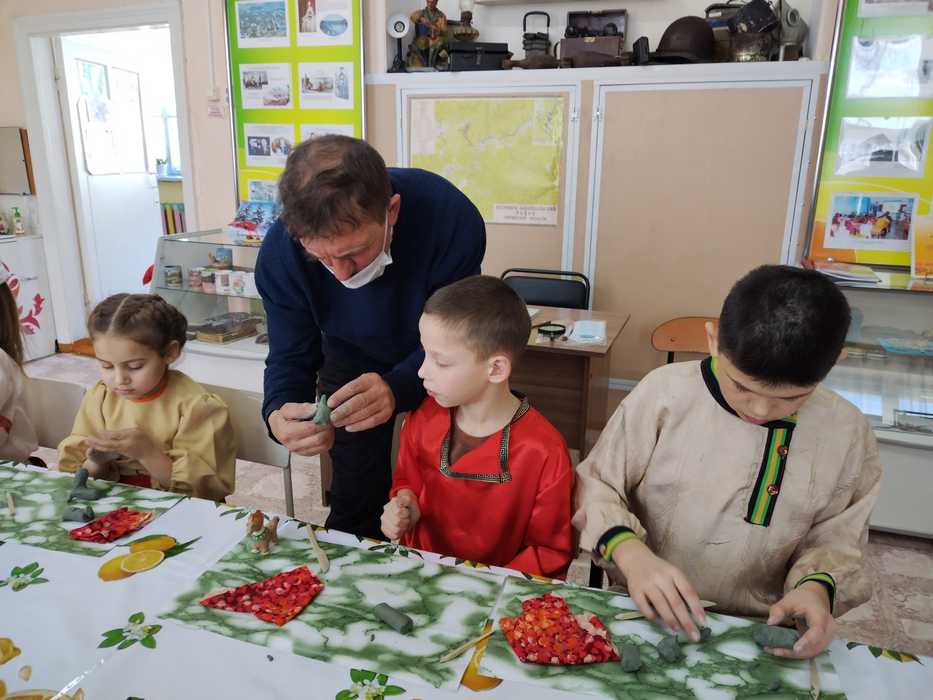 Совсем недавно гостями нашего музея были педагоги Детской художественной школы: Заслуженный работник культуры Читинской области, лучший преподаватель Забайкальского края 2022 года Баженов Сергей Николаевич и Почетный работник общего образования РФ Корешкова Валентина Дмитриевна. Среди своих больших и малых дел они нашли время для наших воспитанников. А мастер класс – «Лепка из глины» превратился в самый настоящий праздник. Для ребят открылся удивительный мир народной глиняной игрушки, передающей представления о народной жизни, труде, красоте. Дети узнали о том, что яркая и жизнерадостная, она обладает волшебной способностью украшать наш быт, вносить в него тепло и радость. И, что очень важно, попробовали своими руками делать игрушки, вкладывая в них усердие и душу. И мы старательно лепили петушков, козликов и каких-то совсем неведомых зверюшек. Удовольствие от своей работы получили все.